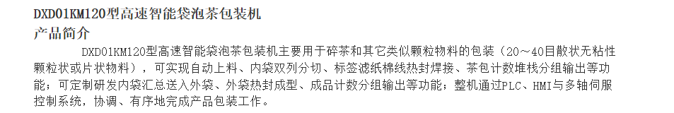 高速包裝機(jī) DXD01KM120型高速智能袋泡茶包裝機(jī)