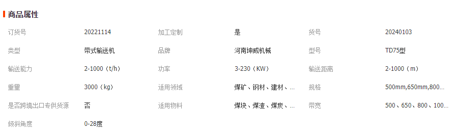 TD75型帶式輸送機(jī)常用于水平運(yùn)輸或傾斜運(yùn)輸,使用非常方便,廣泛應(yīng)用于現(xiàn)代化的各種工業(yè)企業(yè)中,如:礦山地面運(yùn)輸、露天采礦場(chǎng)及選礦廠中。河南坤威機(jī)械可為用戶量身定做TD75型帶式輸送機(jī)。