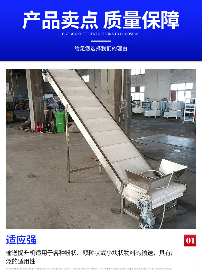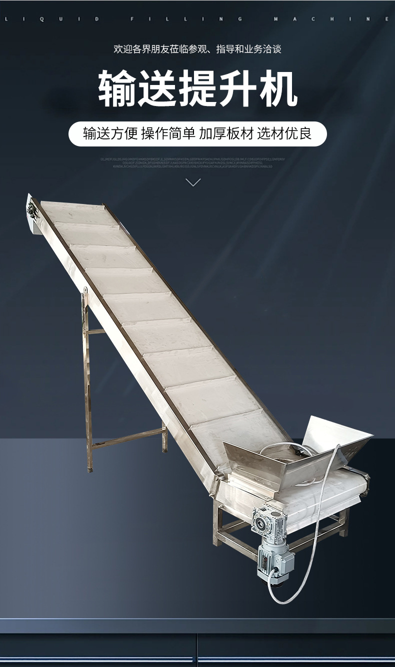 供應(yīng)不銹鋼輸送提升機(jī)食品物料上料輸送設(shè)備用爬坡式流水線輸送機(jī)