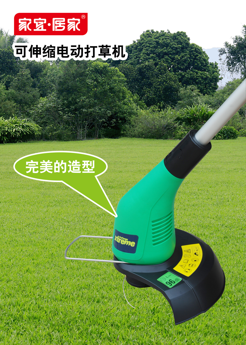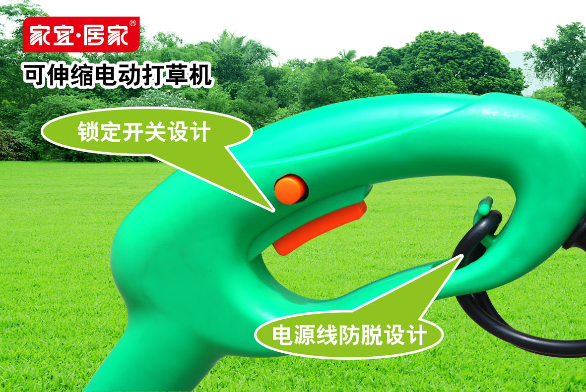 直接安插在電源插座上使用或連接電源接線板,根據(jù)花園的大小,配備電源線長(zhǎng)短。打草時(shí),按下打草機(jī)手柄上的開關(guān)就可以了。