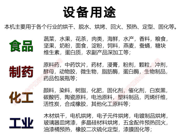 應(yīng)用領(lǐng)域醫(yī)藥、化工、食品、農(nóng)副產(chǎn)品、水產(chǎn)品、輕工等行業(yè)加熱固化、干燥脫水