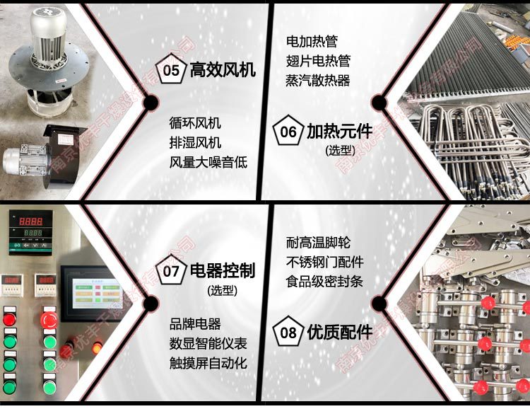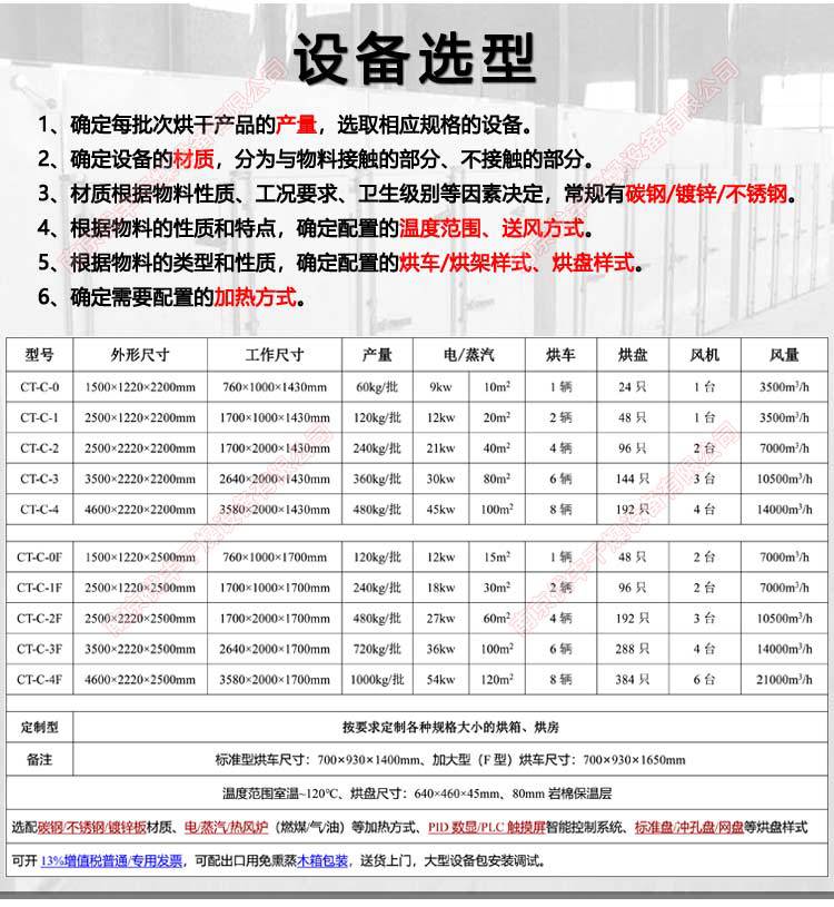 規(guī)格標(biāo)準(zhǔn)單門單車(24只烘盤)60kg/批,標(biāo)準(zhǔn)單門單車(30只烘盤)75kg/批,加大單門單車(40只烘盤)100kg/批,加大單門單車(48只烘盤)120kg/批