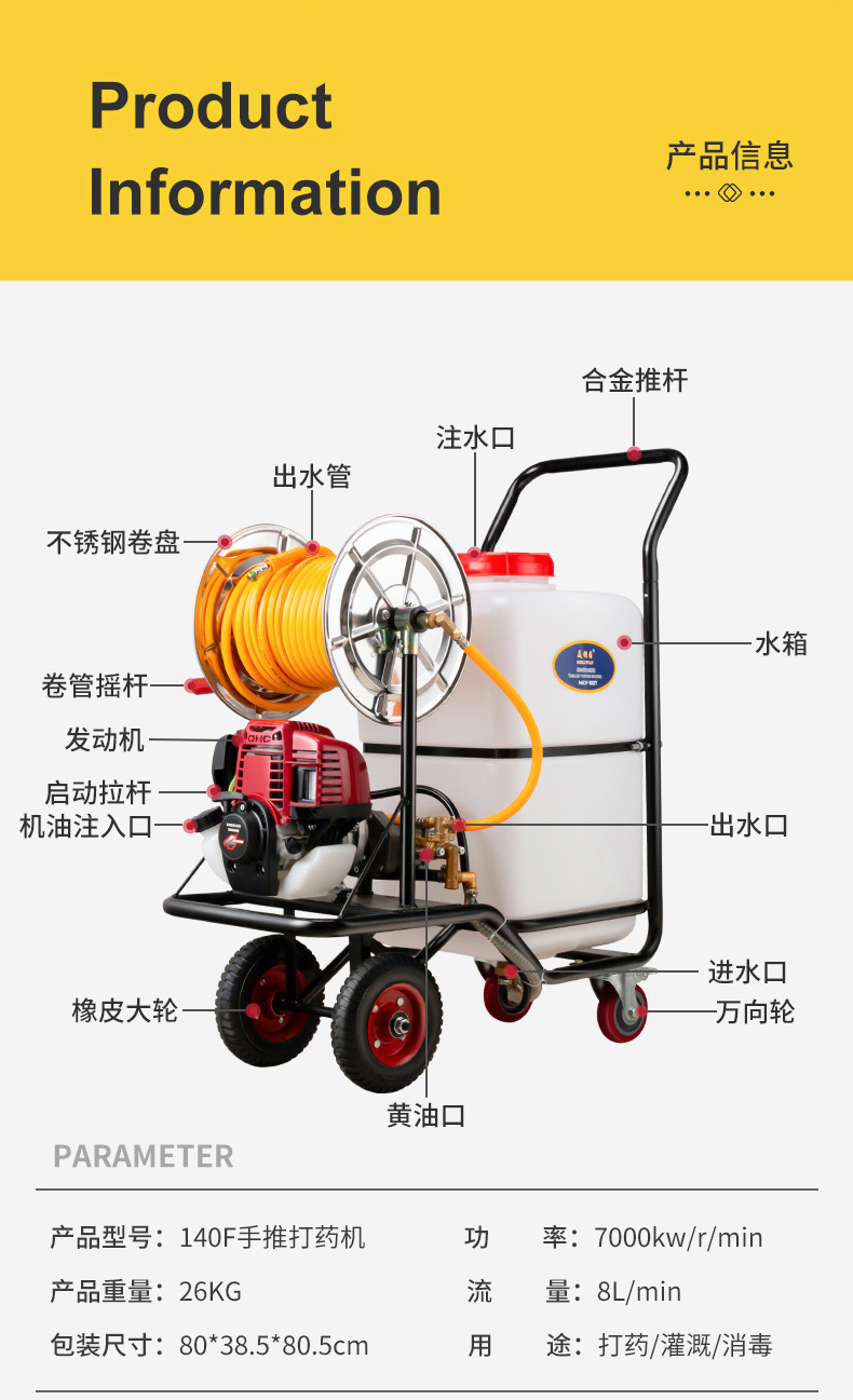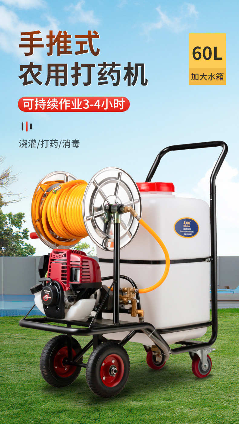 汽油打藥機(jī) 農(nóng)用高壓手推式噴霧器 60L四沖程打藥消毒一體機(jī)