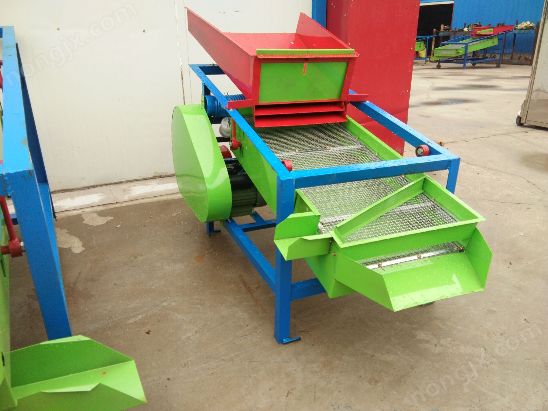 清理篩為兩層篩底,先經(jīng)過前篩的初次篩分把大雜和細(xì)土及小雜清理過,再有主力風(fēng)機(jī)進(jìn)行出料前的zui后風(fēng)選清理,清理后再有設(shè)在zui前端的小型拋糧機(jī)進(jìn)行遠(yuǎn)距離拋射,zui終達(dá)到清理霉變的糧食及糧食中含有的小石子!該小型清糧機(jī)解決了其他糧食振動篩篩過后輸送的麻煩,不僅為你解決了輸送的煩惱,更能為清理糧食帶來滿意的效果,該篩機(jī)省去了不必要的輸送機(jī)設(shè)備的投資,占地小,移動方便,便以維修!真可謂是中小型糧食清理篩中的戰(zhàn)斗機(jī)!