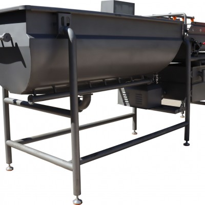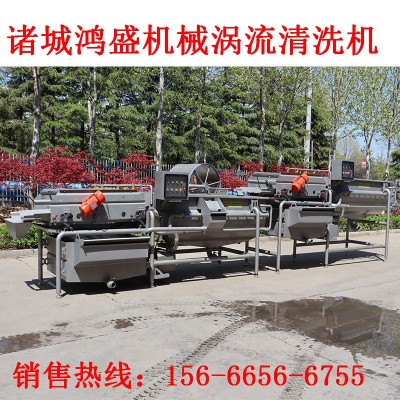 渦流清洗機(jī)是利用池壁的多個(gè)出水口噴出壓力水,與清洗凈水形成渦流,使物料卷于漩渦水中翻轉(zhuǎn)清洗。物料在水池中同凈水一起做螺旋運(yùn)動(dòng),通過(guò)池后壁水流推進(jìn)噴嘴形成的水流的前進(jìn)方向?qū)⑽锪蠋С銮逑闯兀M(jìn)入振動(dòng)瀝水機(jī)。