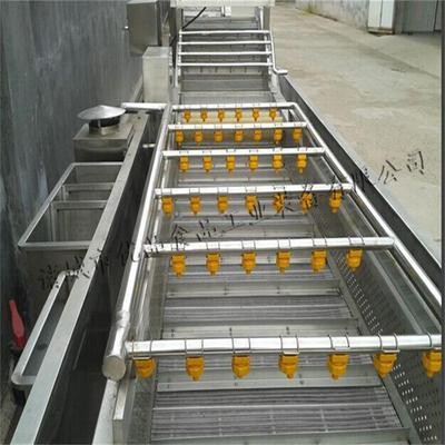物料進(jìn)入水槽,在高壓水流和強(qiáng)力氣泡的作用下,被充分打散、翻滾、清洗、傳送。從物料表面洗掉的泥沙沉入底部的隔離艙,不會(huì)發(fā)生翻揚(yáng)回流造成再度污染,在沉淀雜質(zhì)的處理上,通過循環(huán)水泵的水循環(huán),讓雜質(zhì)進(jìn)入過濾箱,水箱的過濾裝置可以自由的拆卸,二次過濾讓雜質(zhì)遺留在水箱處,漂浮物通過上端的溢水口排除,漂流不出的通過弧形過濾網(wǎng)攔截,保證水池干凈的同時(shí),能夠及時(shí)的排出雜質(zhì),保證產(chǎn)品清洗效果。產(chǎn)品通過網(wǎng)帶輸送出口處,配備有二次清水清洗,在保證產(chǎn)品清潔度的同時(shí),更能及時(shí)給設(shè)備槽體內(nèi)補(bǔ)充水源,保證設(shè)備內(nèi)的水源清潔度,達(dá)到清洗效果。本設(shè)備用于新鮮番茄、菠菜、白菜蘋果、葡萄、榨菜、洋蔥、辣椒以及其他根塊狀果品蔬菜的漂洗。