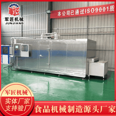 隧道速凍機(jī)是一種結(jié)構(gòu)較為簡單的速凍裝置。根據(jù)輸送帶的不同,可分為隧道網(wǎng)帶速凍機(jī)和隧道板帶速凍機(jī)。 網(wǎng)帶速凍機(jī)主要適合于海產(chǎn)品,禽肉,蔬菜,水果,面食,乳制品等食品的速凍加工。凍結(jié)量可在100kg/h~3000kg/h。結(jié)構(gòu)簡單,運(yùn)行方便,使用壽命長。采用不銹鋼彈簧絲壓制而成,表面平整,可根據(jù)要求選擇網(wǎng)帶寬度。根據(jù)產(chǎn)量要求可選用單、雙板帶組合。采用水沖霜,保證清潔衛(wèi)生。