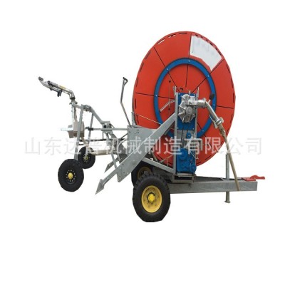 噴頭車回收到主機(jī)上,手搖起吊裝置可將噴頭車起吊升高,增高噴頭車行走輪的離地高度,方便噴灌機(jī)的移動(dòng)和運(yùn)輸;避免噴灌機(jī)在移動(dòng)過程中因路面有溝、坡等導(dǎo)致噴