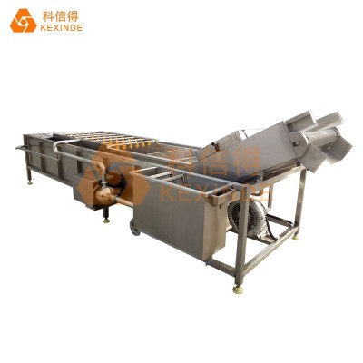 清洗機(jī)采用氣泡清洗,有效分離被清洗物表面附著物,模擬人工清洗基本動作并有效避免了人工清洗中的碰、磕、劃傷等現(xiàn)象,提高了工作效率,變?nèi)斯ぷ鳂I(yè)為機(jī)械化加工。適合于各種新鮮蔬菜、鹽漬菜、菌類、海產(chǎn)品。根據(jù)所清洗物料比重的不同,設(shè)計了兩種型號:全網(wǎng)帶型、半網(wǎng)帶型。半網(wǎng)帶型適合于物料比重小于或等于水的物料,全網(wǎng)帶型適合比重大于水或怕碰傷的物料。