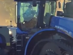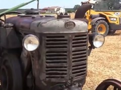 使用老式拖拉機(jī)翻麥地